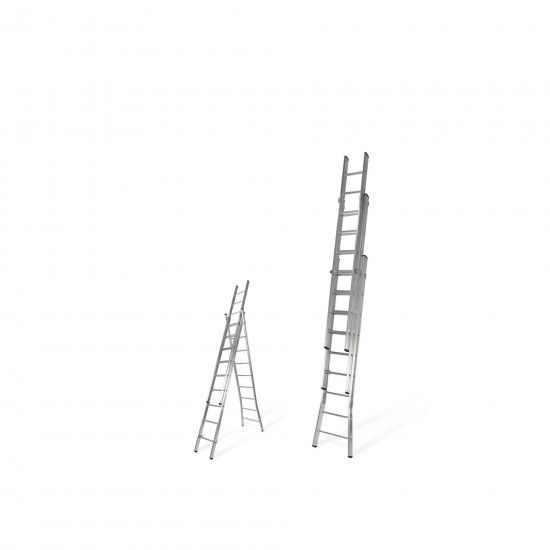 Escada eco tripla em alumínio, com degraus redondos anti-deslizantes